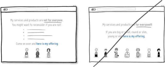 描述或限制適合產(chǎn)品或服務的目標族群,可以幫助網(wǎng)站找到更多相似特質的使用者,也更具特色,同時讓使用者感到自己具獨特性。然而,使用這樣策略具有風險,可能讓你的網(wǎng)站在短期內失去一些潛在用戶。不過,透明與誠實才是建立與使用者之間信任的最佳方式。